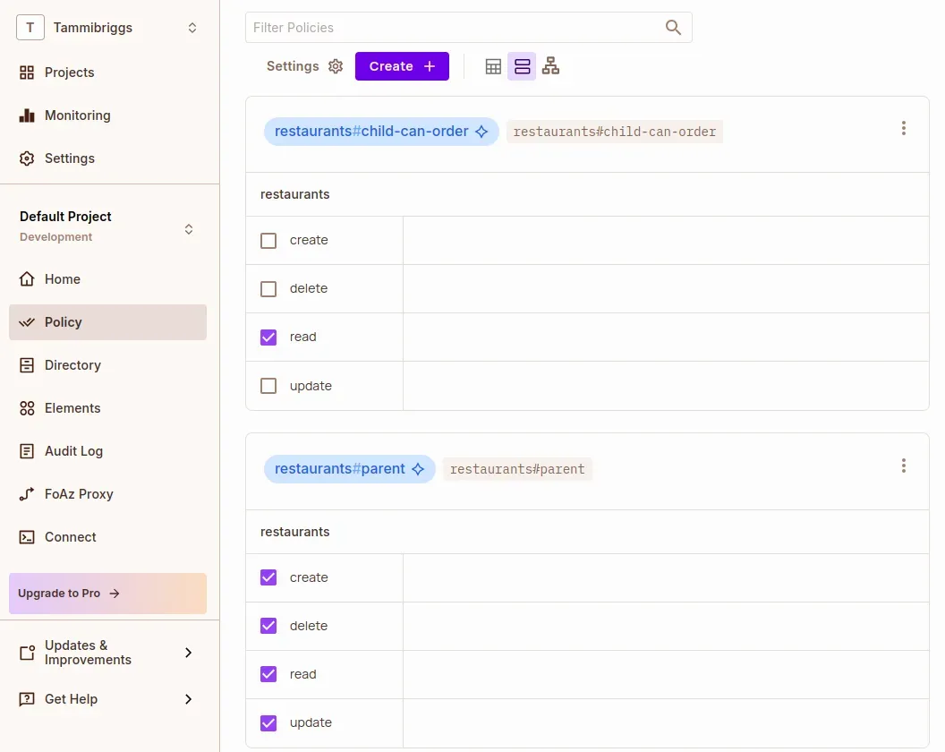 Before running the server, we need to define the access control structure in the Permit.io dashboard. This includes: